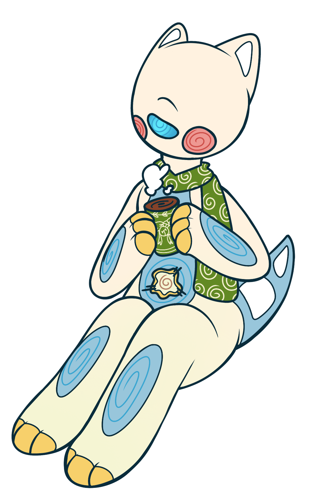 During winter, Koma loves to put on their favorite scarf and drink some warm hot cocoa! It's one of the few things that helps them calm down.