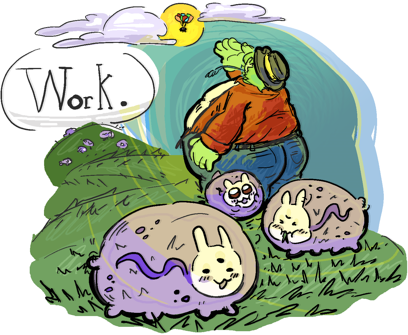 This is how is normal work day goes (if the pets are that large I could not tell but also part of them gave off like sheep rabbit vibes).