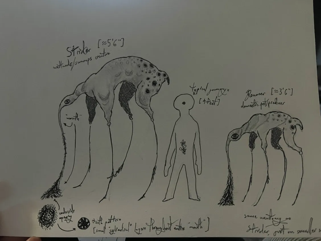 the STRIDER is a relatively tall insectish mammallian creature native to Novaedus' marshes/wetlands/swamps