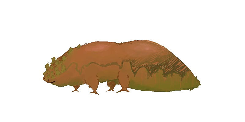 the BUSHFACE TREASURER is blind, yet possess a series of lumpish 'sensors' on its head. this is where the 'bushface' part of its name comes from. it is believed that many of these sensors are specialised in scent, which is how the little things are capable of locating metal objects without eyes